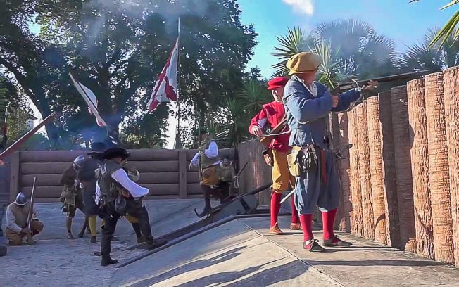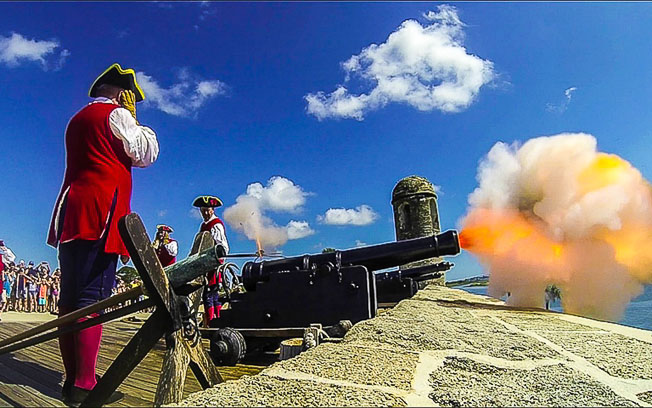Rangers and volunteers demonstrate the weapons and relate the experiences of the colonial Spanish soldier of 1740s St. Augustine at the Castillo de San Marcos. This event is weekly on Friday, Saturday, and Sunday and presented several times during the day on the NorthEast Gun Deck.