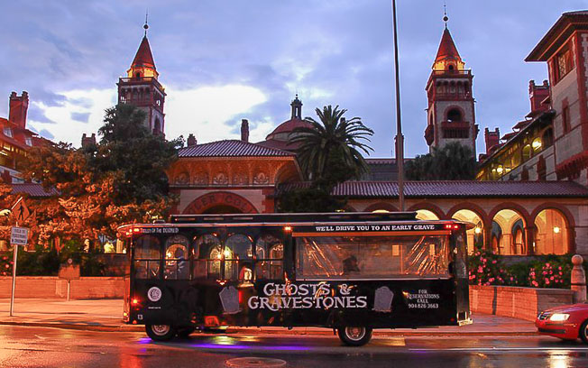 On this Ghost and Gravestones Night Tour through St. Augustine, Florida you will take a guided night tour on a trolley that will take you to sights such as an Indian burial ground, an old jail, and many other locations said to be haunted.