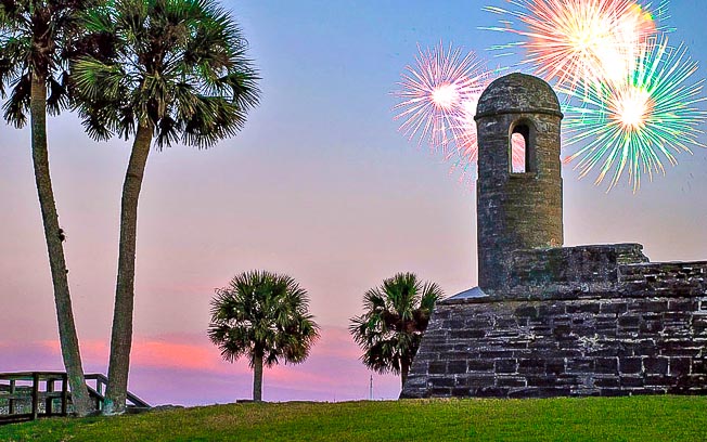 St. Augustines July 4th celebration by the Castillo de San Marcos includes a live music concert and a spectacular fireworks display over the historic bayfront. Fireworks Over the Matanzas is one of the biggest and best fireworks displays on the East Coast, featuring 5,000 individual shells exploding as high as 2,000 feet and as low as 100 feet.